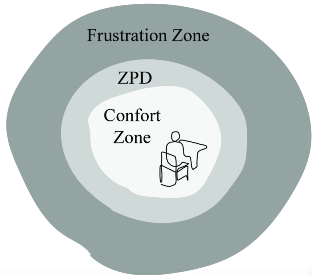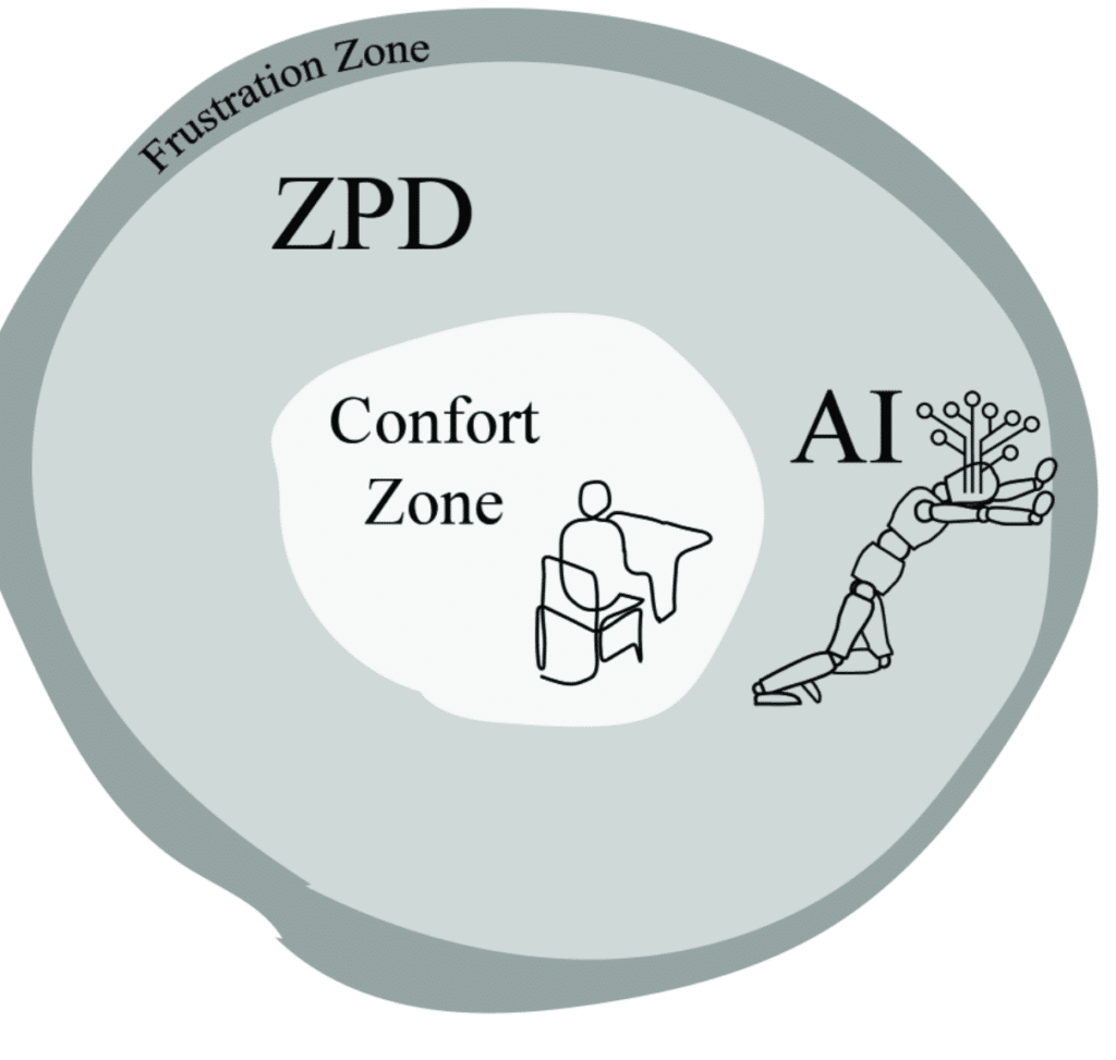 This discussion activity is based on the paper “The Unspoken Crisis of Learning: The Surging Zone of No Development” by Euzeli C. dos Santos Jr. and Tracey Birdwell. The paper revisits a classic idea from educational psychology: Vygotsky’s Zone of Proximal Development (ZPD). Traditionally, ZPD describes the space between what a learner can do independently and feels comfortable doing and what they can achieve with the just right support. That supportive zone is where meaningful learning happens, not in the comfort zone, and not where tasks are so hard that frustration takes over and students are likely to lose motivation.